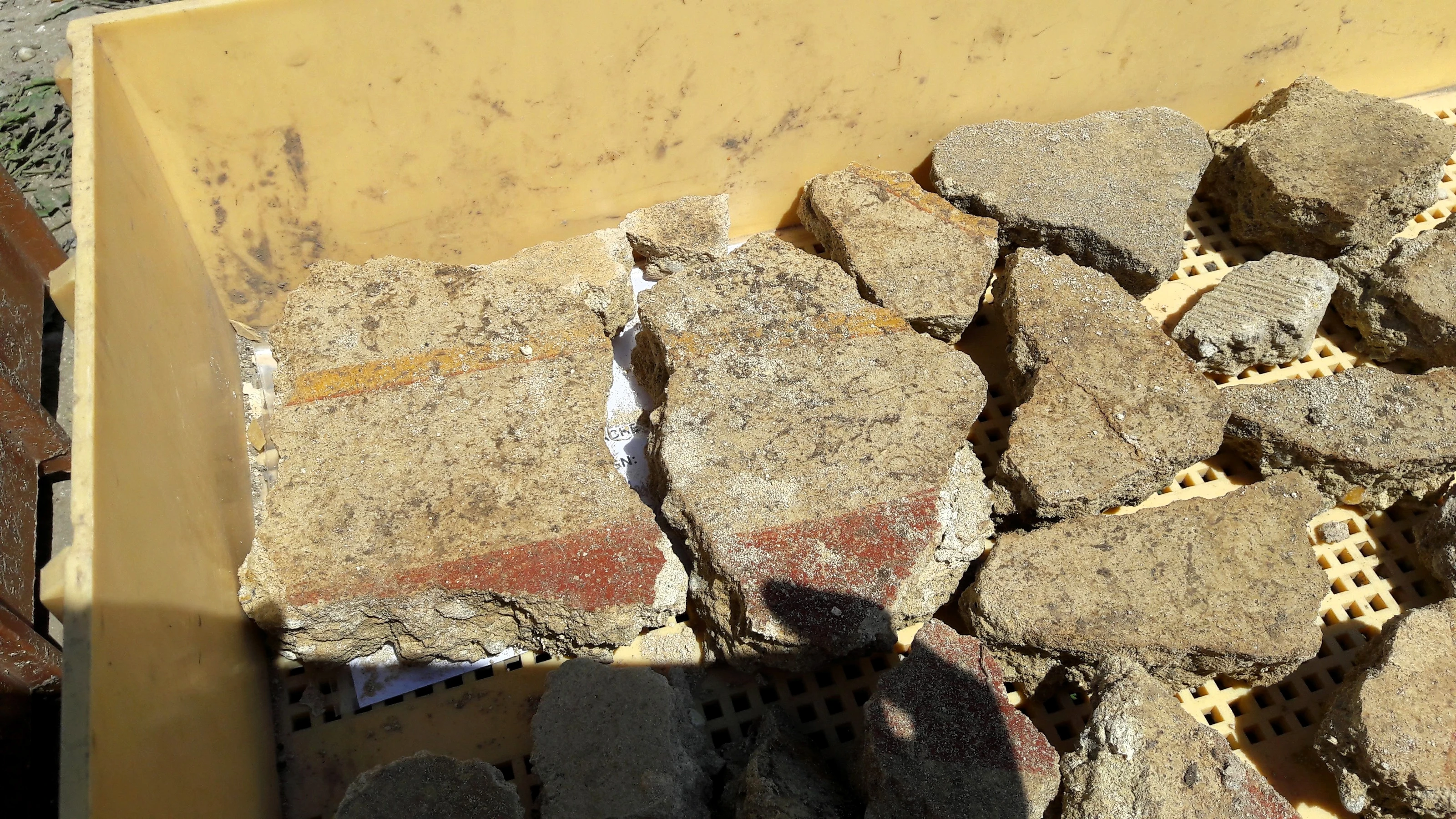 Wall plaster from the 2017 excavation section of the villa urbana, fragments of wall paintings